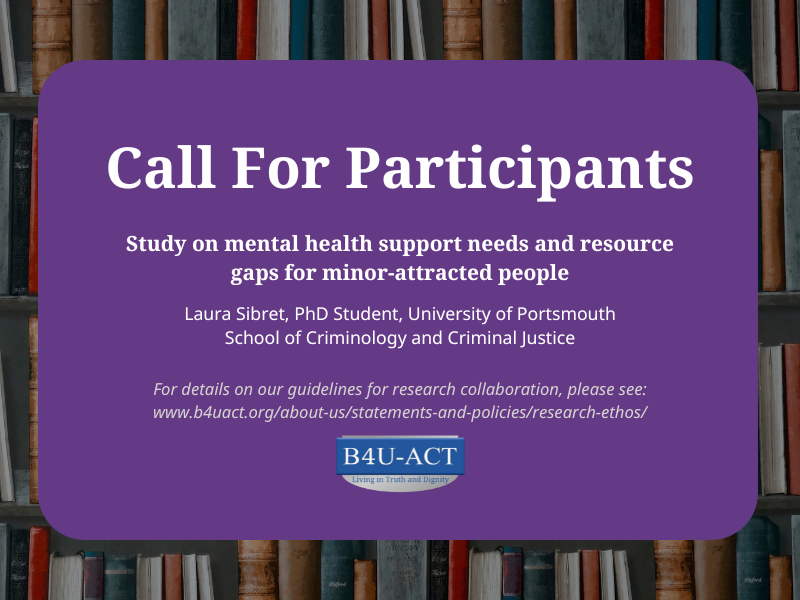 Update, 9/22/2025: Recruitment for this study has ended, thank you to all who participated! Original Post, 8/13/2025: Participants are needed for a new study conducted by researchers at the University of Lancashire in the United Kingdom. The study aims to explore lived experiences of people who are attracted to children…...