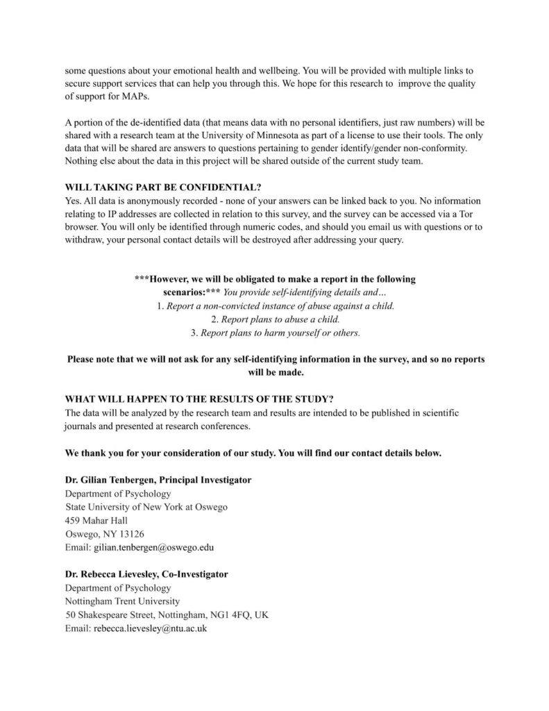 Minor-attracted people are being asked to participate in a new study, conducted by a multinational team of researchers at SUNY Oswego and Nottingham Trent University. The study aims to explore the use of fictional and fantasy sexual outlets among individuals with sexual attractions to children.